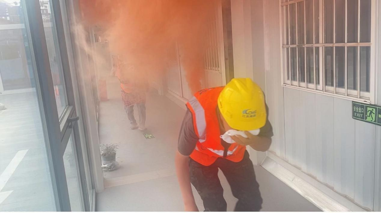 本次演練模擬項目部辦公區域意外著(zhù)火的場(chǎng)景。演練現場(chǎng),濃煙逐漸升起,火勢有迅速蔓延的趨勢。險情出現后,項目負責人第一時(shí)間拉響警報,應急救援小組按照預案分工進(jìn)行救援,電工馬上切斷電源;搶險組趕赴火災現場(chǎng),使用消防水帶連接就近的消防栓控制火勢;警戒疏散組拉設警示帶設置警示區,指揮現場(chǎng)人員疏散到安全區并清點(diǎn)人數,禁止無(wú)關(guān)人員進(jìn)入火災現場(chǎng),維持現場(chǎng)的秩序,避免造成混亂。