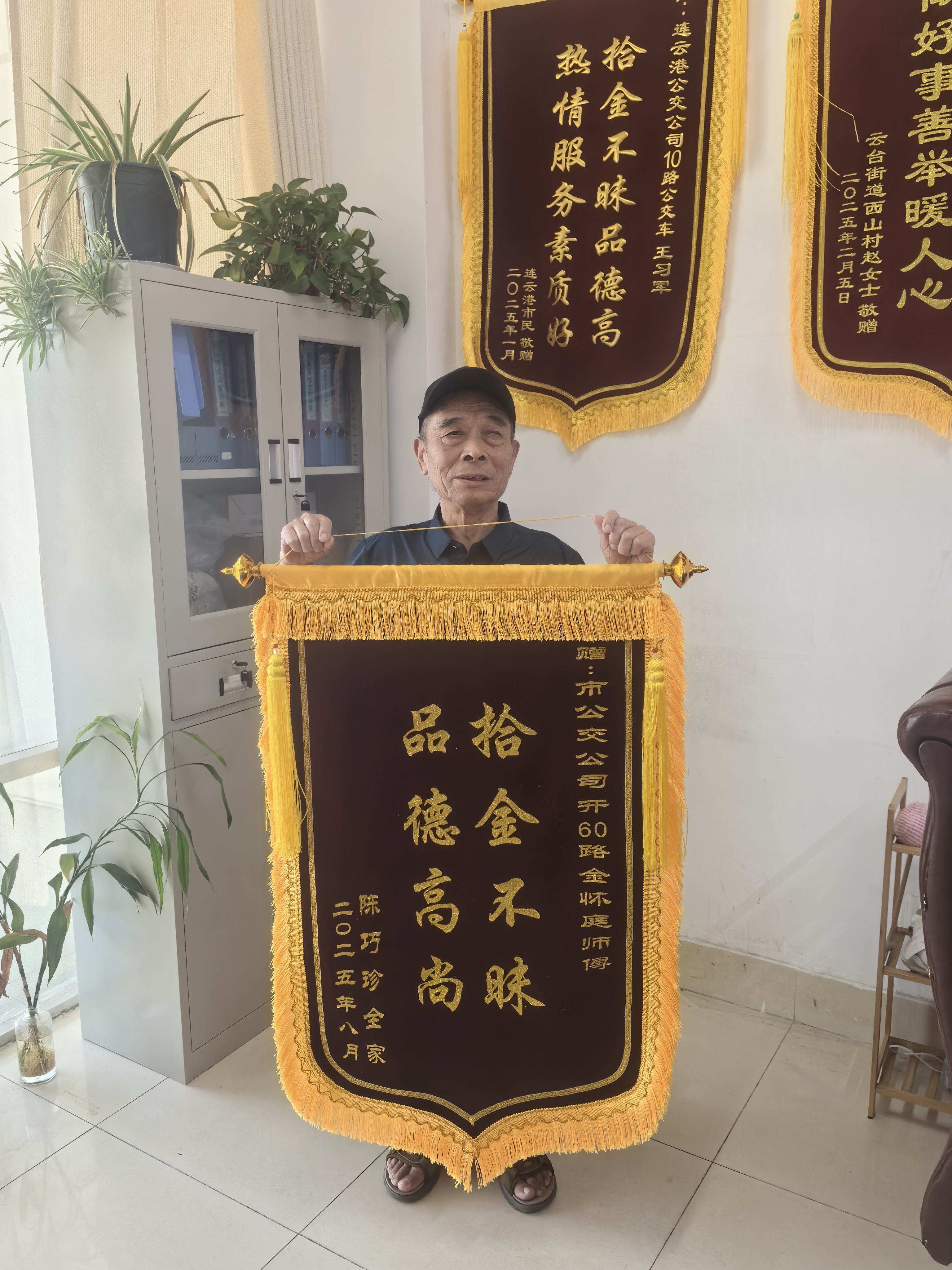 60路駕駛員金懷庭拾金不昧,老人贈錦旗表謝意