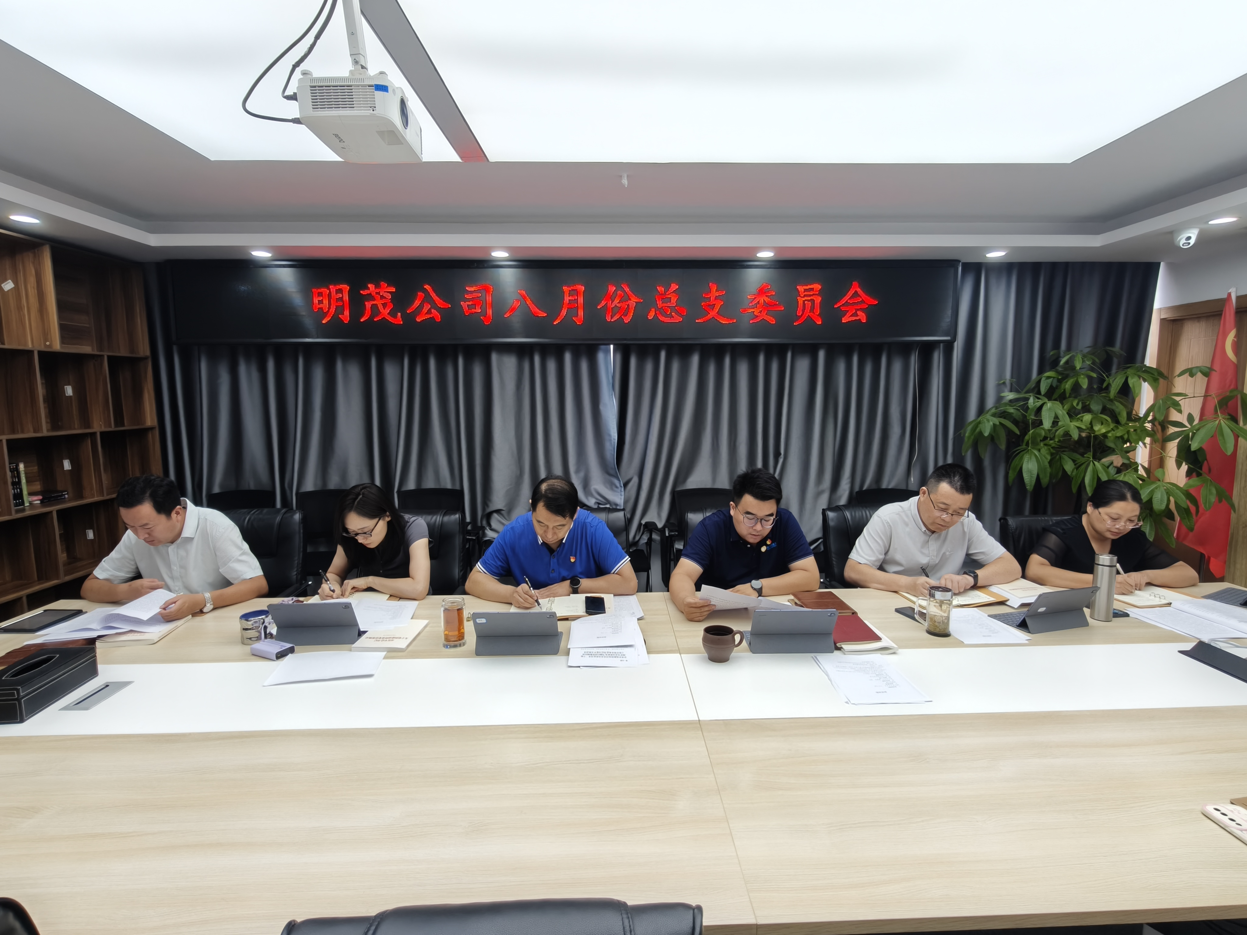 8月8日下午,明茂公司黨總支召開(kāi)8月份總支委員會(huì ),傳達學(xué)習中共中央政治局會(huì )議精神,部署貫徹落實(shí)工作。會(huì )議由公司黨總支書(shū)記、董事長(cháng)袁軍同志主持召開(kāi)。明茂公司領(lǐng)導班子成員參加會(huì )議、相關(guān)部門(mén)負責人列席會(huì )議。