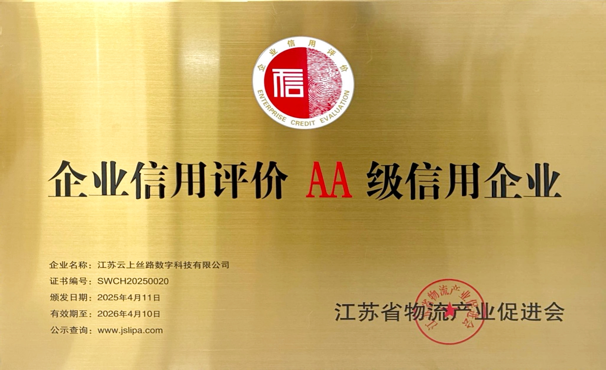 江蘇云上絲路數字科技有限公司榮獲物流企業(yè)信用評價(jià)AA級信用企業(yè)稱(chēng)號