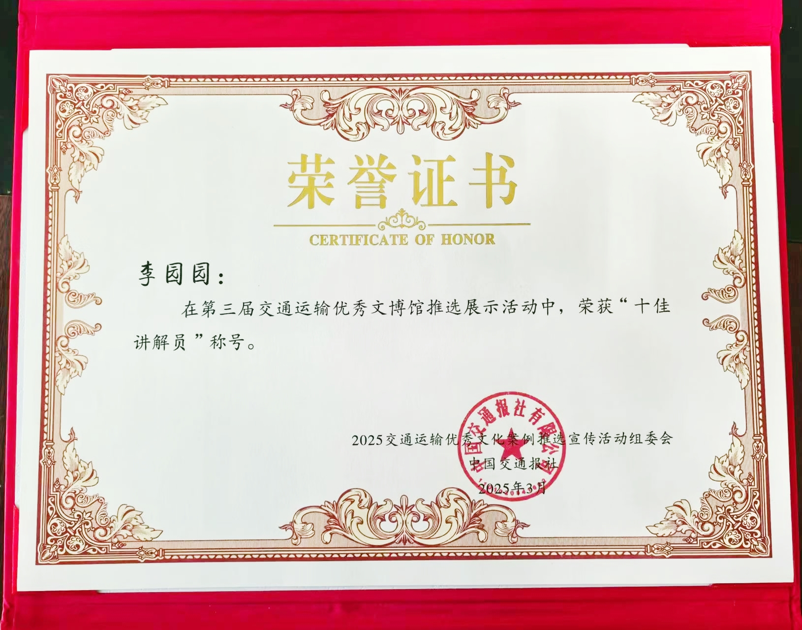 近日,在第三屆交通運輸優(yōu)秀文博館集中展示活動(dòng)中,連汽新浦汽車(chē)總站“雷鋒車(chē)”事跡陳列館講解員李園園憑借出色表現,榮獲“十佳講解員”稱(chēng)號。