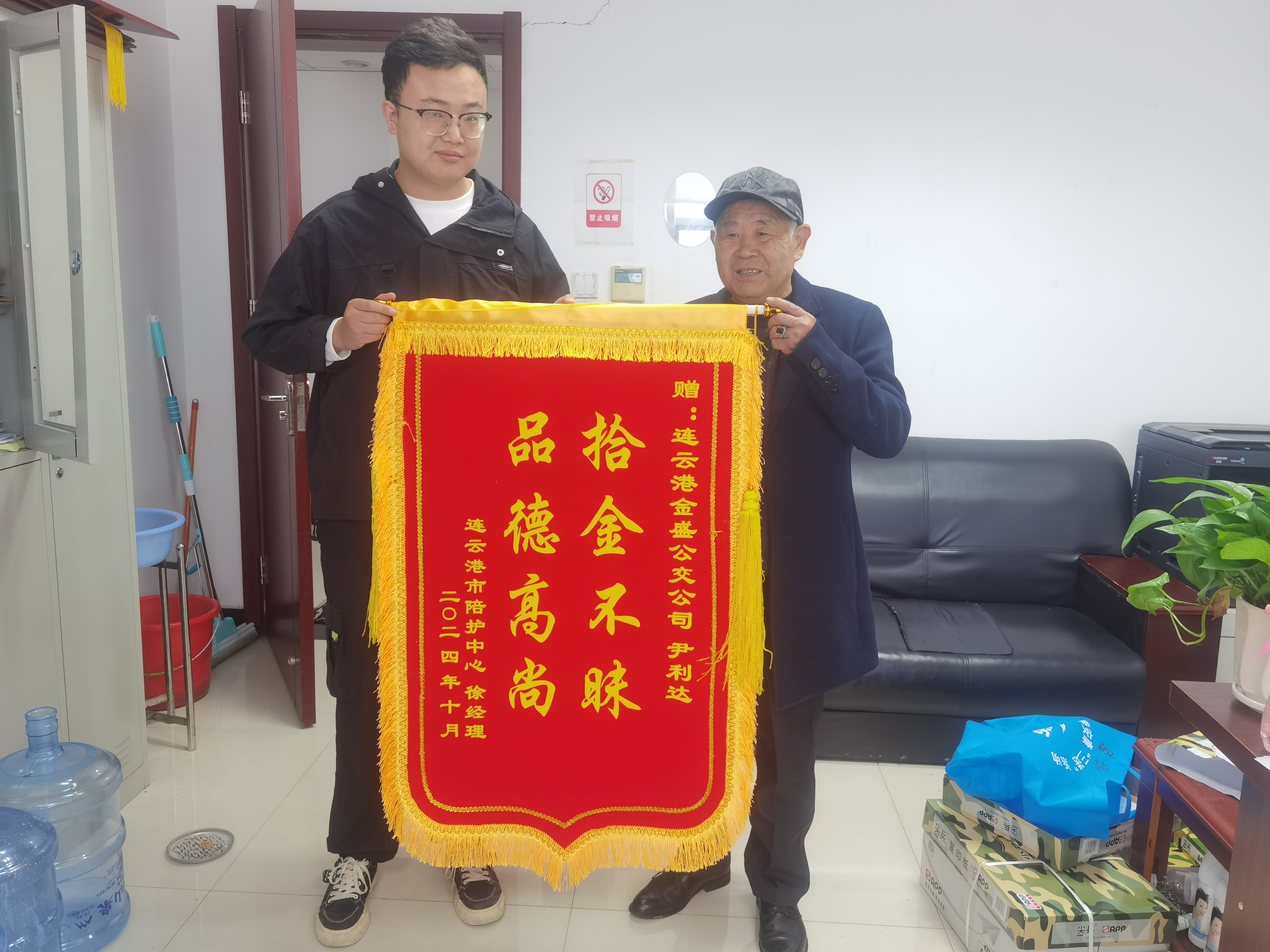 為了表達對尹利達師傅拾金不昧高尚品德的感謝,徐經(jīng)理特意擇日來(lái)到金盛公交公司,送上了一面寫(xiě)有“拾金不昧, 品德高尚”的錦旗。尹利達師傅拾金不昧的行為,不僅展現了公交駕駛員良好的職業(yè)素養,也為社會(huì )傳遞了一份正能量。