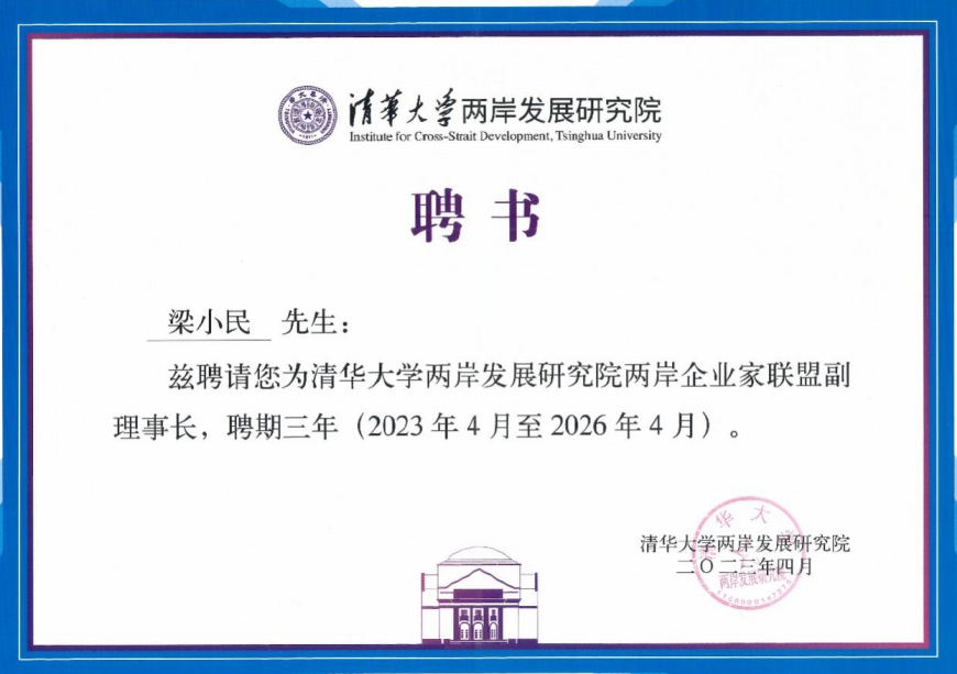 明茂港嘉公司總經(jīng)理梁小民任清華大學(xué)兩岸發(fā)展研究院兩岸企業(yè)家聯(lián)盟副理事長(cháng)