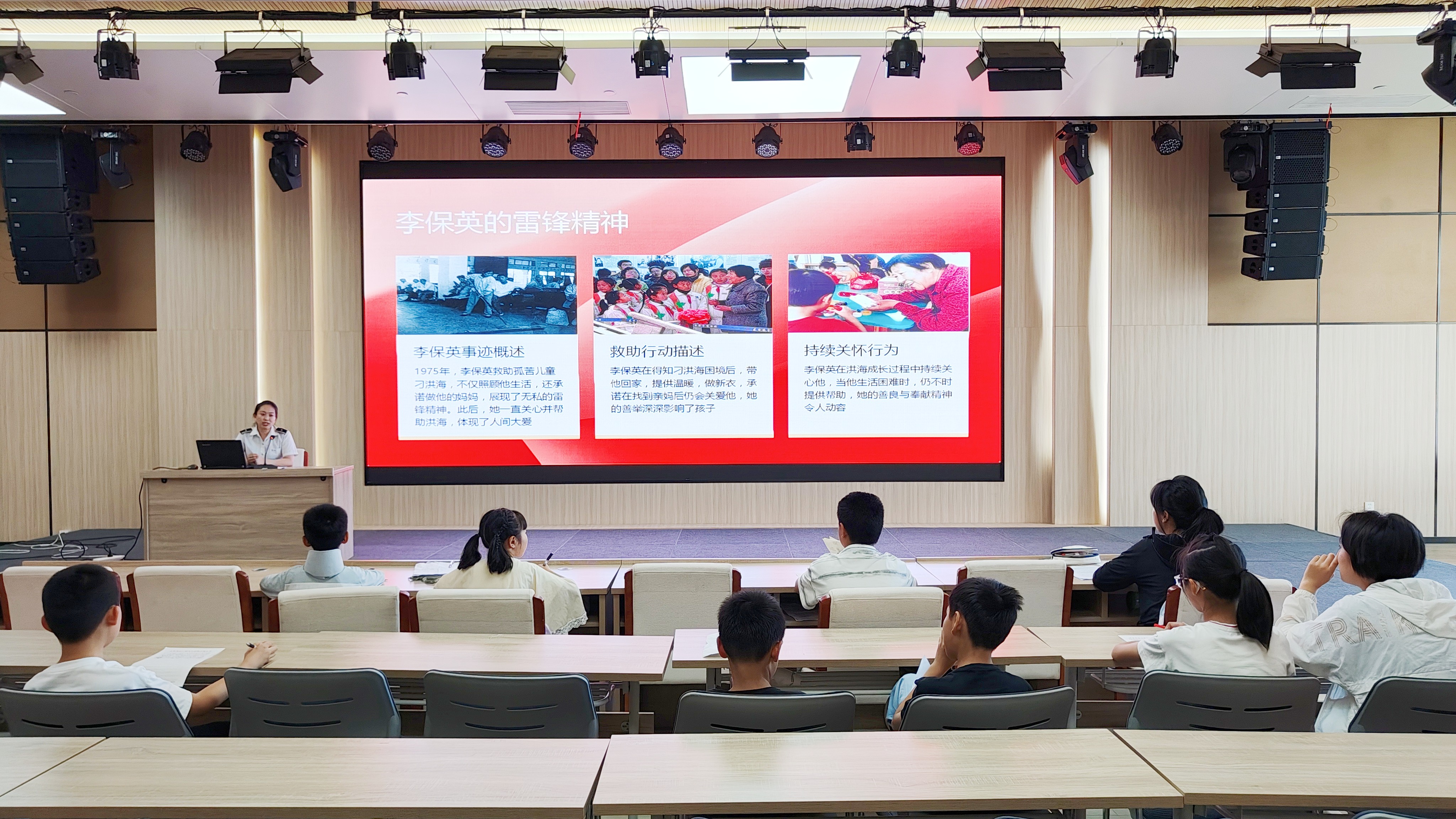 講座現場(chǎng),“雷鋒車(chē)”手結合親身經(jīng)歷,生動(dòng)講述“雷鋒車(chē)”組六十多年如一日為民服務(wù)的點(diǎn)滴故事。從幫旅客搬運行李、尋失散親人,到為困難群眾墊車(chē)費、緊急護送病患,一個(gè)個(gè)平凡卻閃耀的瞬間,讓青少年深刻感受“寧愿自己千般苦,不讓旅客一時(shí)難”的奉獻精神?!袄卒h車(chē)”手還分享了寒來(lái)暑往堅守崗位、面對誤解保持耐心、團隊互幫互助等“背后故事”,讓孩子們明白“雷鋒車(chē)”精神既在轟轟烈烈的善舉中,更藏在日復一日的堅持里。