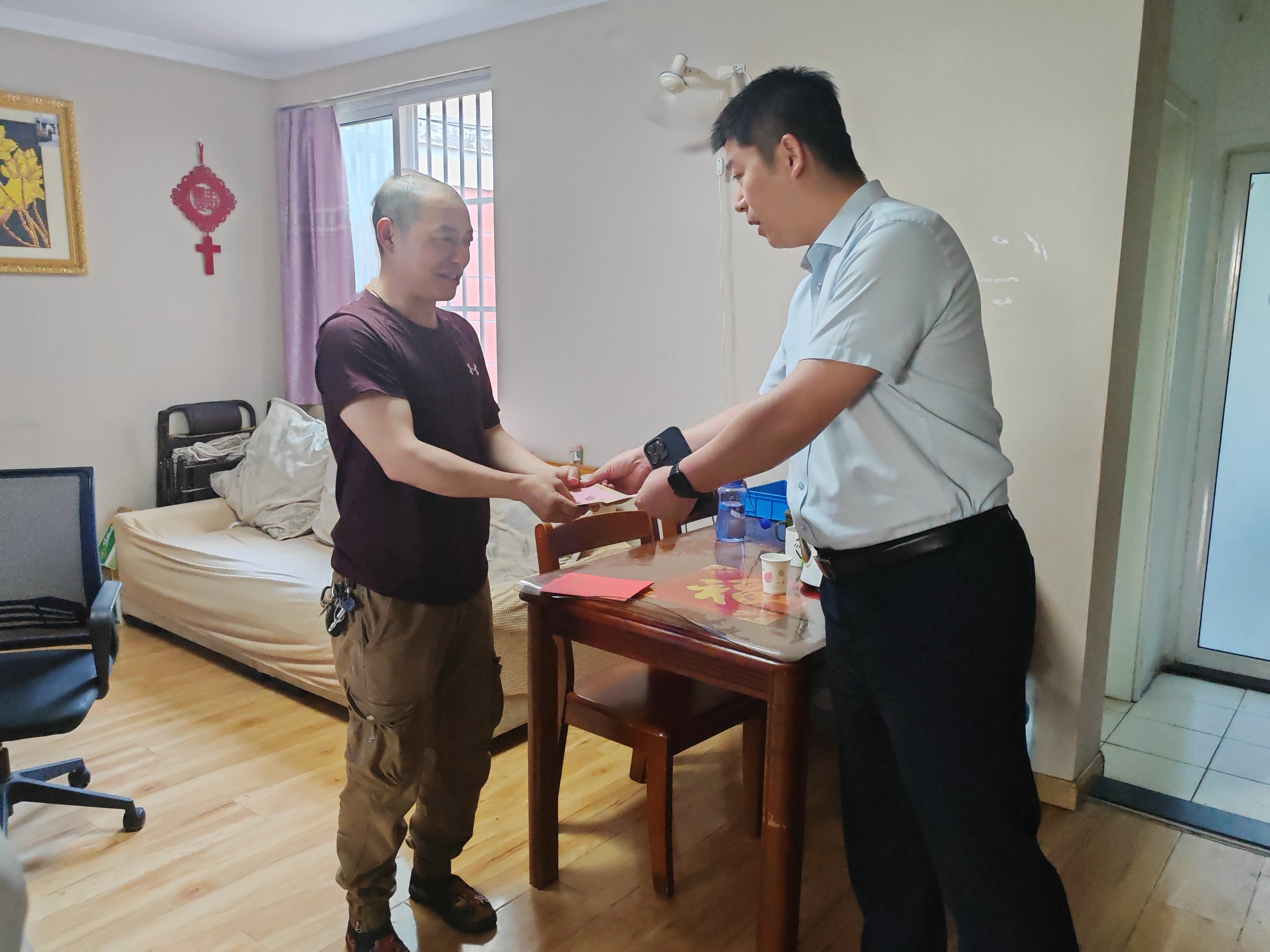王學(xué)兵一行先后來(lái)到困難黨員家中,與他們親切交談并為他們送上慰問(wèn)金。在困難黨員家里,王學(xué)兵分別詢(xún)問(wèn)了困難黨員的身體狀況和生活情況等,叮囑他們要保持積極樂(lè )觀(guān)心態(tài)面對困難。