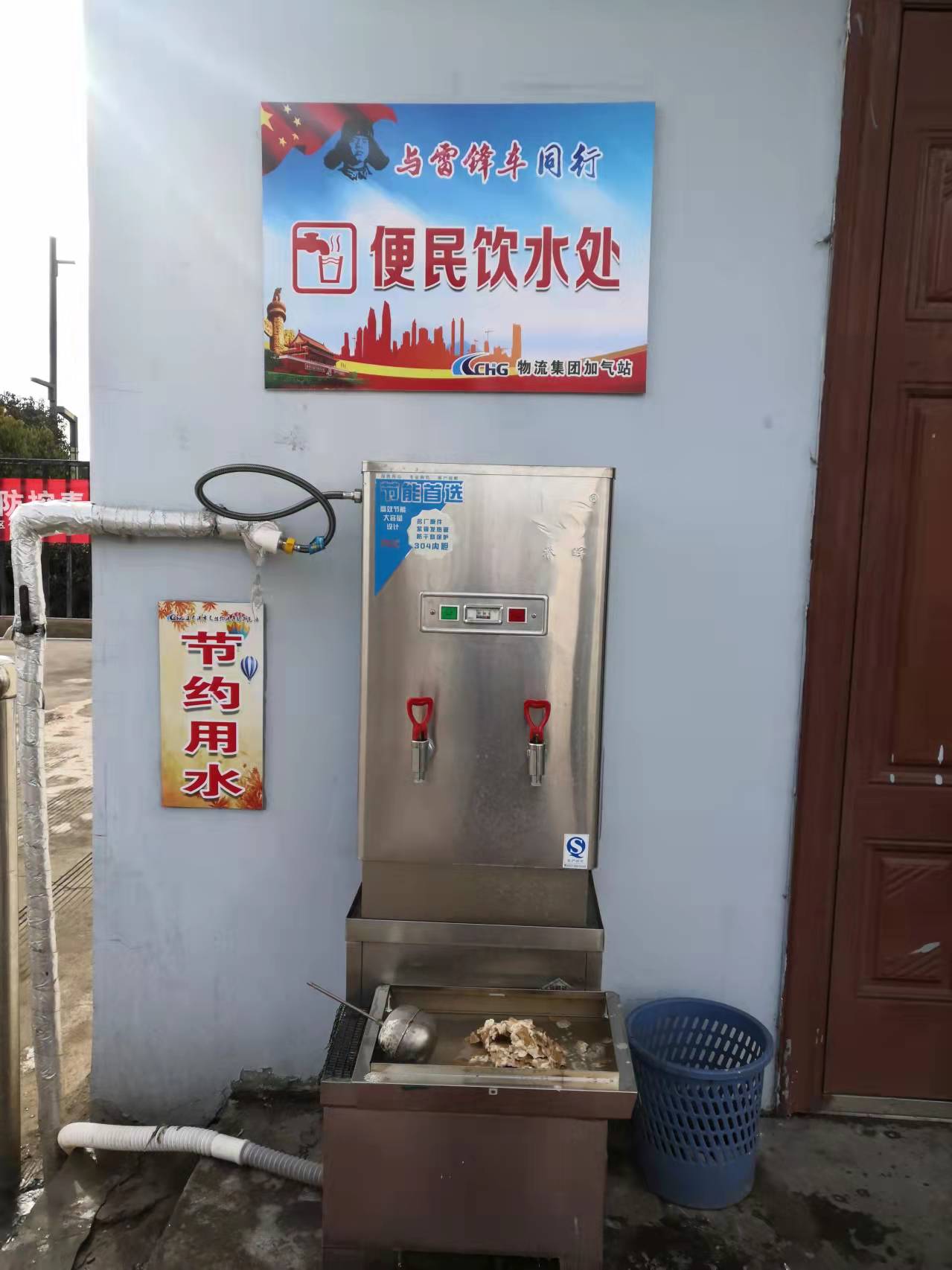 全年無(wú)休的便民飲水機,24小時(shí)隨時(shí)待命,為辛勤工作的環(huán)衛工人、快遞員和往來(lái)駕駛員師傅提供全天候免費茶水服務(wù),讓他們在寒冷的冬日感受到加氣站給他們送上的一絲溫暖!這是加氣站黨支部為民辦實(shí)事中最有意義的一件,雖然加氣站定期對便民飲水機進(jìn)行清理,但由于長(cháng)時(shí)間、不間斷工作,水垢依然很厚。安全運營(yíng)部人員關(guān)閉水閥和電路開(kāi)關(guān),更換浮球并張貼“維護清理中”通知。