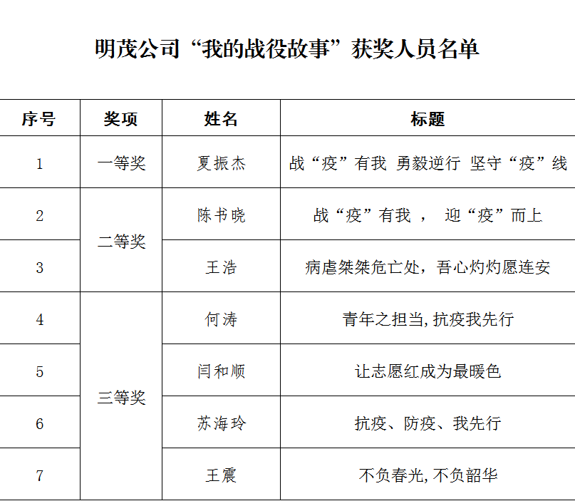 由明茂公司舉辦的“我的戰役故事”征文活動(dòng)評選活動(dòng)結果于6月30日揭曉。