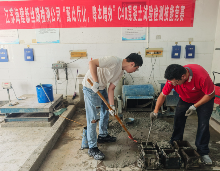 當前,C40混凝土“配比優(yōu)化、降本增效”技能競賽正在江蘇海建新絲路檢測公司順利開(kāi)展。這場(chǎng)以提升混凝土配比技術(shù)、實(shí)現降本增效為目標的競賽,吸引公司各科室技術(shù)骨干積極參與,目前各項比拼環(huán)節正有序推進(jìn)。