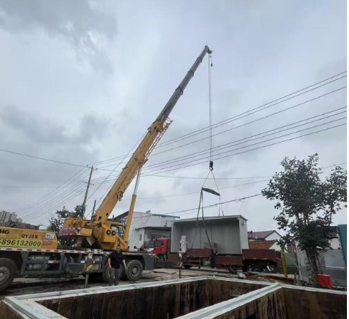 近日,海建公司北廣場(chǎng)項目部雨污水泵站預制艙順利吊裝到位,標志著(zhù)該項目關(guān)鍵節點(diǎn)順利完成,為泵站的安裝及工程建設奠定堅實(shí)基礎。