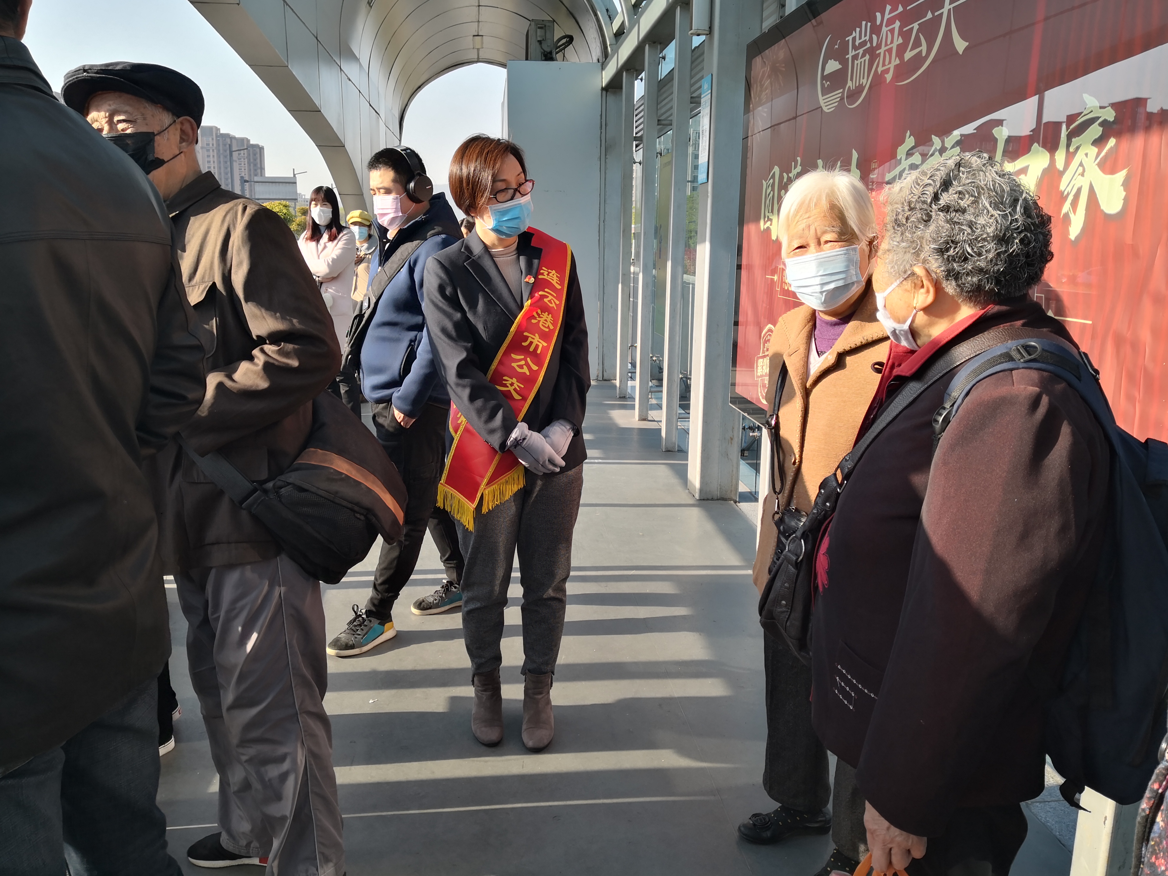 同時(shí),快速公交黨支部結合港城創(chuàng )文實(shí)際及安全生產(chǎn)工作,組織“文明交通”志愿服務(wù)活動(dòng)。志愿者們以?xún)扇藶橐唤M,統一穿著(zhù)志愿者馬甲及“文明公交,綠色出行”綬帶,深入客流較大的8個(gè)站臺,在出行早高峰期及時(shí)勸阻乘客不文明現象,引導乘客先下后上,有序乘車(chē),并對駕駛員著(zhù)裝規范、路口減速等進(jìn)行重點(diǎn)檢查?;顒?dòng)中志愿者們熱情服務(wù),倡導督促乘客文明乘車(chē),耐心解答乘客疑問(wèn),并積極宣傳本市創(chuàng )文要求,營(yíng)造了良好的文明乘車(chē)氛圍。