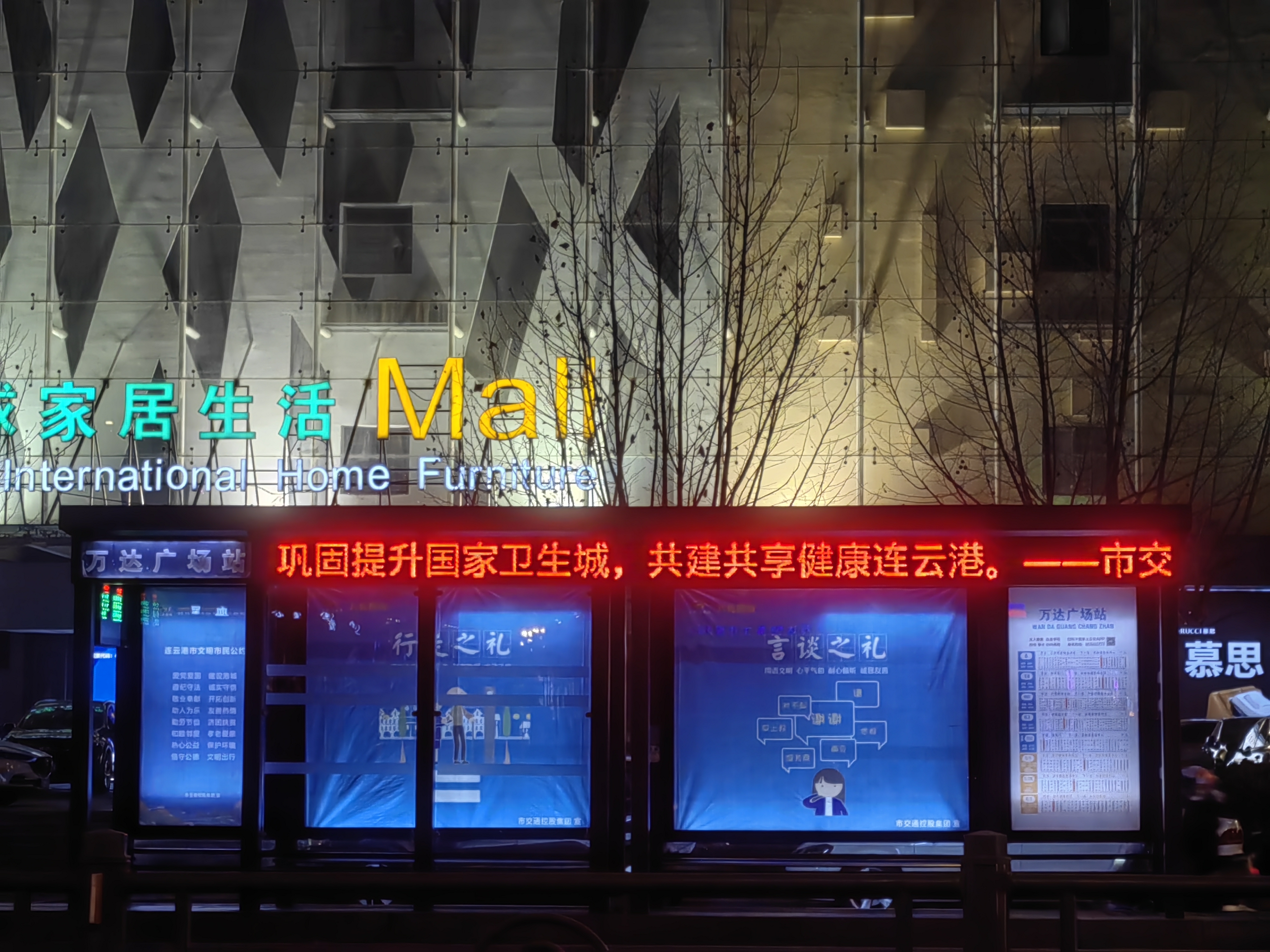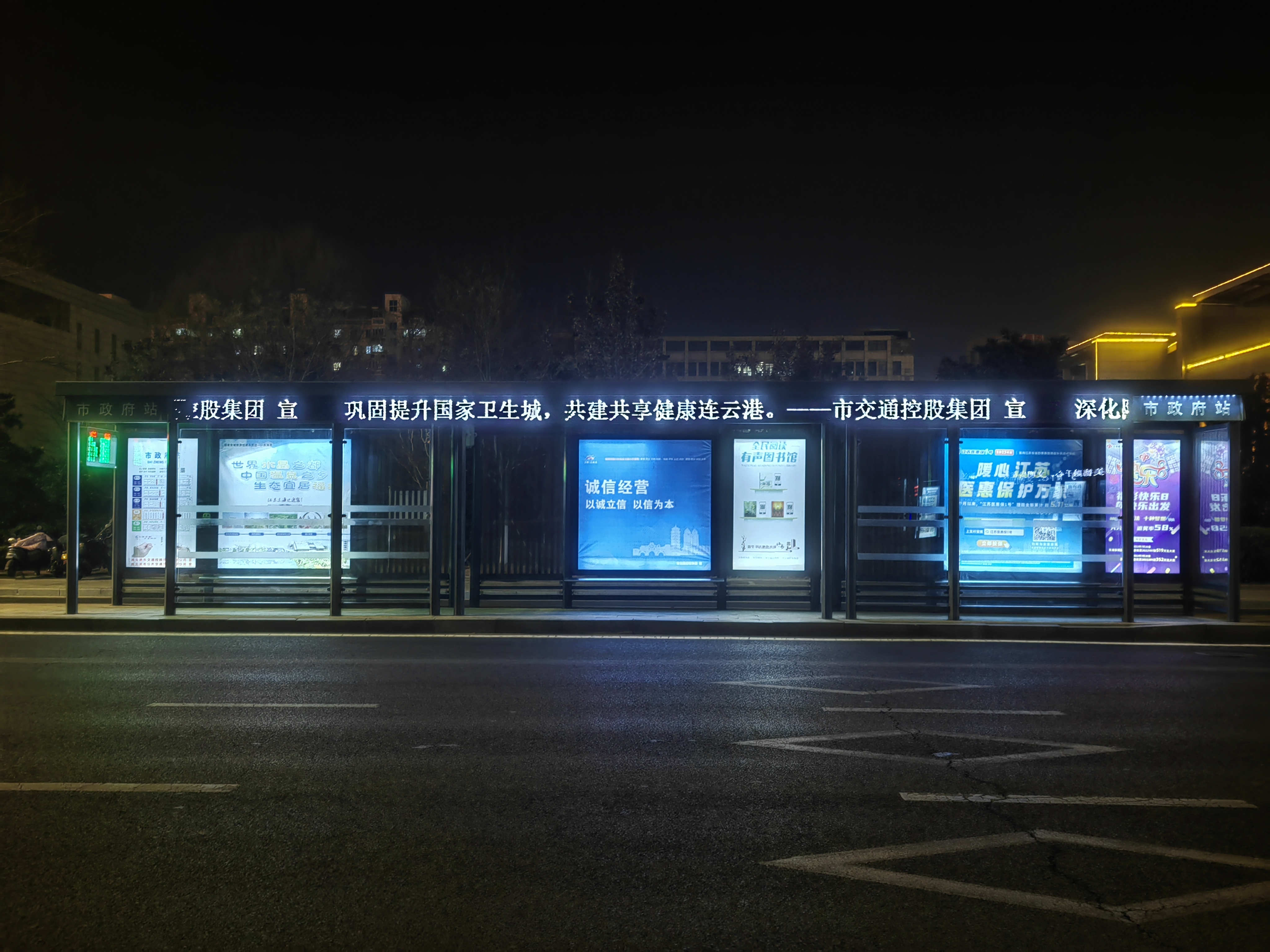 全市400余座公交站亭作為人流密集區域,成為此次社會(huì )面宣傳的任務(wù)重點(diǎn)。政府下達的相關(guān)文件中指出,為確保強化宣傳工作,“創(chuàng )衛”內容的可見(jiàn)度要廣泛至城區主次干道,其中包括臨街行人駐足大于2分鐘的LED顯示屏。交通集團充分發(fā)揮自身宣傳優(yōu)勢,利用市區公交站亭的LED條屏等電子媒體,對本次創(chuàng )建衛生城市的口號標語(yǔ)進(jìn)行全天滾動(dòng)播放。相關(guān)標語(yǔ)的內容為:“鞏固提升國家衛生城,共建共享健康連云港”。