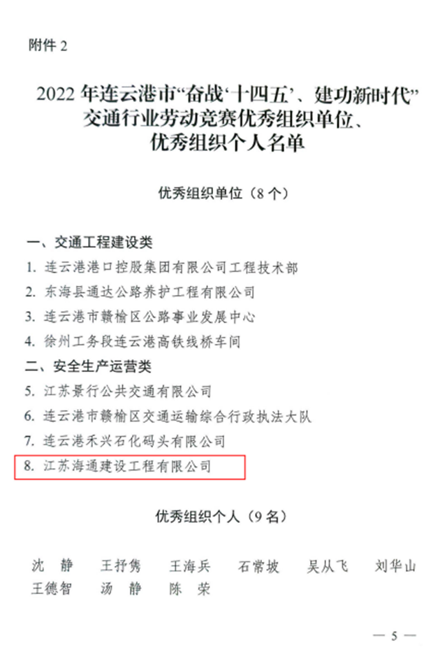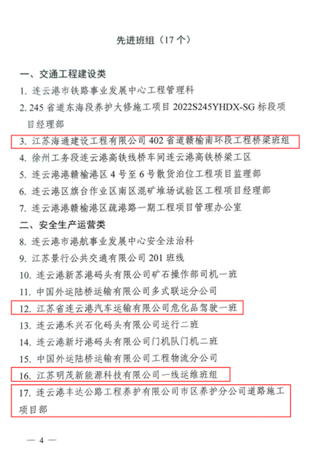 近日,從市總工會(huì )、市交通運輸局傳來(lái)喜訊,集團權屬公交集團公交事業(yè)一部榮獲2022年全市“奮戰十四五、建功新時(shí)代”交通行業(yè)勞動(dòng)競賽先進(jìn)集體,海建公司402省道贛榆南環(huán)段工程橋梁班組、汽車(chē)公司?;否{駛一班、明茂新能源公司一線(xiàn)運維班組和豐達公司市區養護分公司道路施工項目部四個(gè)班組榮獲先進(jìn)班組,公交集團周卓文被評為先進(jìn)個(gè)人,海建公司被評為優(yōu)秀組織單位。