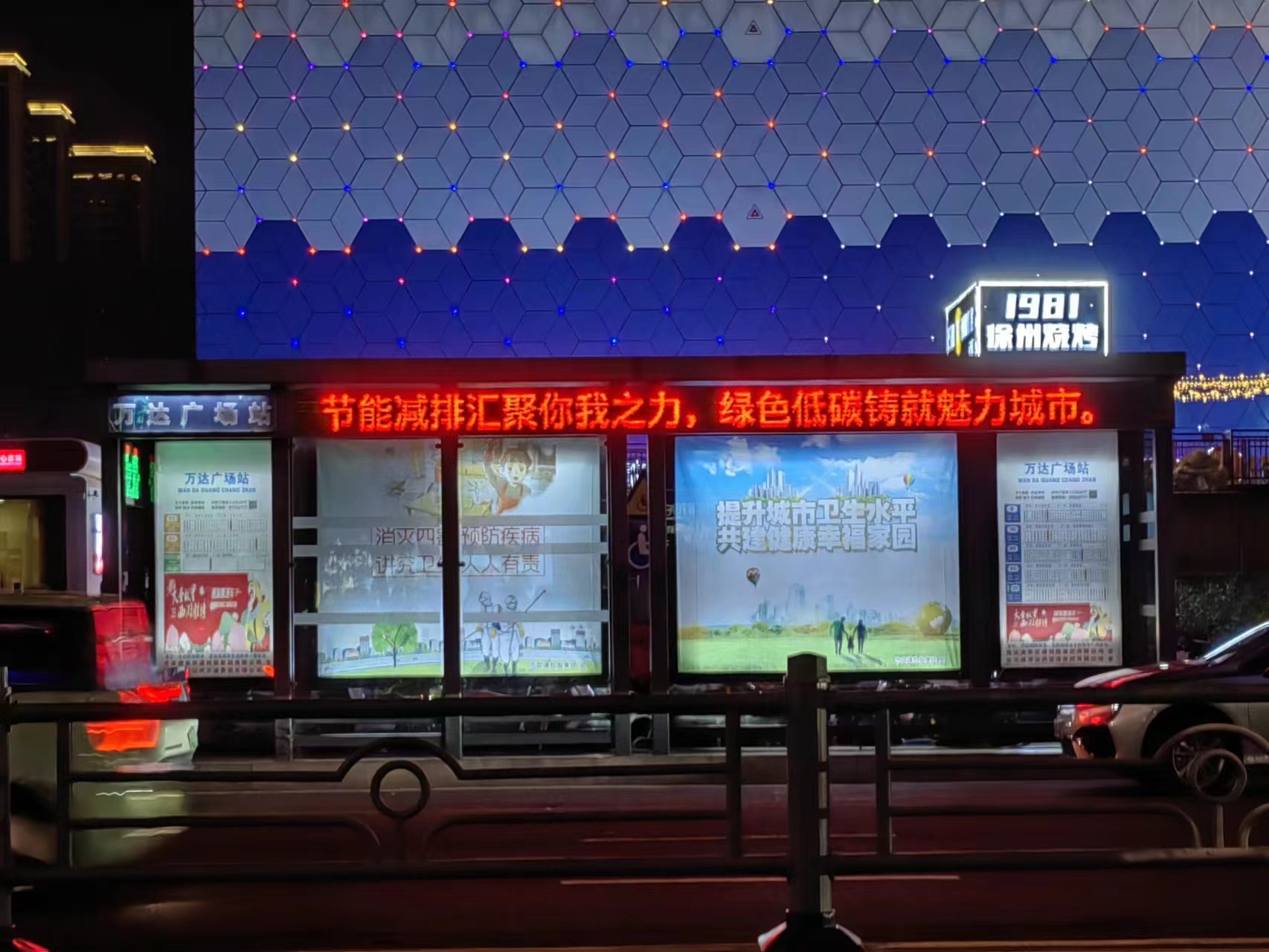 此次宣傳工作以全市400余座常規公交站亭為陣地,充分利用了曝光度極高的公交站亭作為媒介,大大提高了宣傳推廣效率,保證了一定的受眾群體基數。宣傳以口號標語(yǔ)為主要載體,上刊于市區各主要道路的公交站亭LED條屏,標語(yǔ)內容為:“節能減排匯聚你我之力,綠色低碳鑄就魅力城市”。