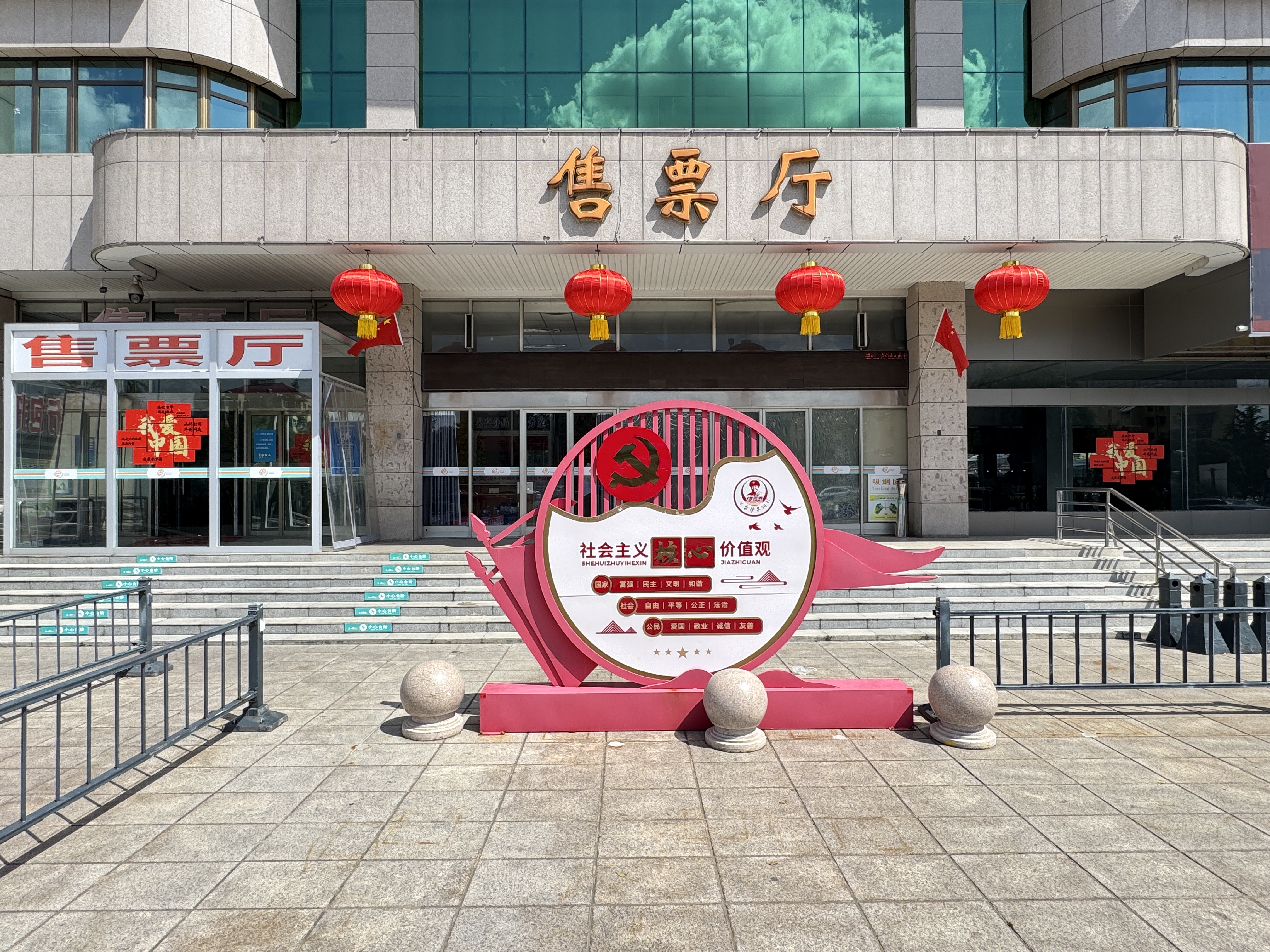公司前期結合各站場(chǎng)功能布局提前規劃,因地制宜開(kāi)展布置:在各站場(chǎng)售票大廳拉國旗彩帶,門(mén)前懸掛紅燈籠,玻璃窗上張貼“我愛(ài)中國”主題海報,LED顯示屏滾動(dòng)播放歡慶節日宣傳圖片;在“雷鋒車(chē)”驛站更是細節打磨,服務(wù)臺擺放中秋主題桌花,墻面張貼歡慶的宣傳海報,門(mén)前懸掛國旗。工作人員還逐一對裝飾元素檢查調式,擦拭燈籠表面、調整海報角度,確保每處布置既美觀(guān)又安全。