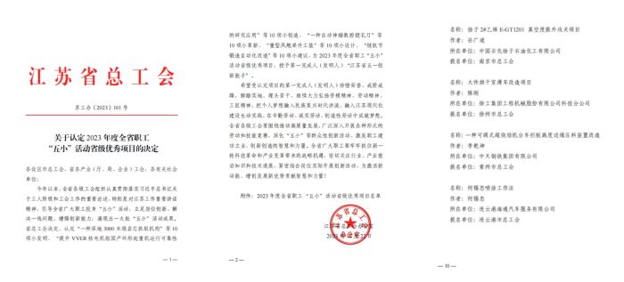為認真貫徹落實(shí)習近平總書(shū)記關(guān)于工人階級和工會(huì )工作的重要論述,特別是對江蘇工作重要講話(huà)精神,引導全省廣大職工投身“五小”活動(dòng),立足崗位創(chuàng )新、解決一線(xiàn)問(wèn)題、增強創(chuàng )新能力,省總工會(huì )經(jīng)過(guò)層層選拔和嚴格評審,最終評選出了一批優(yōu)秀成果。