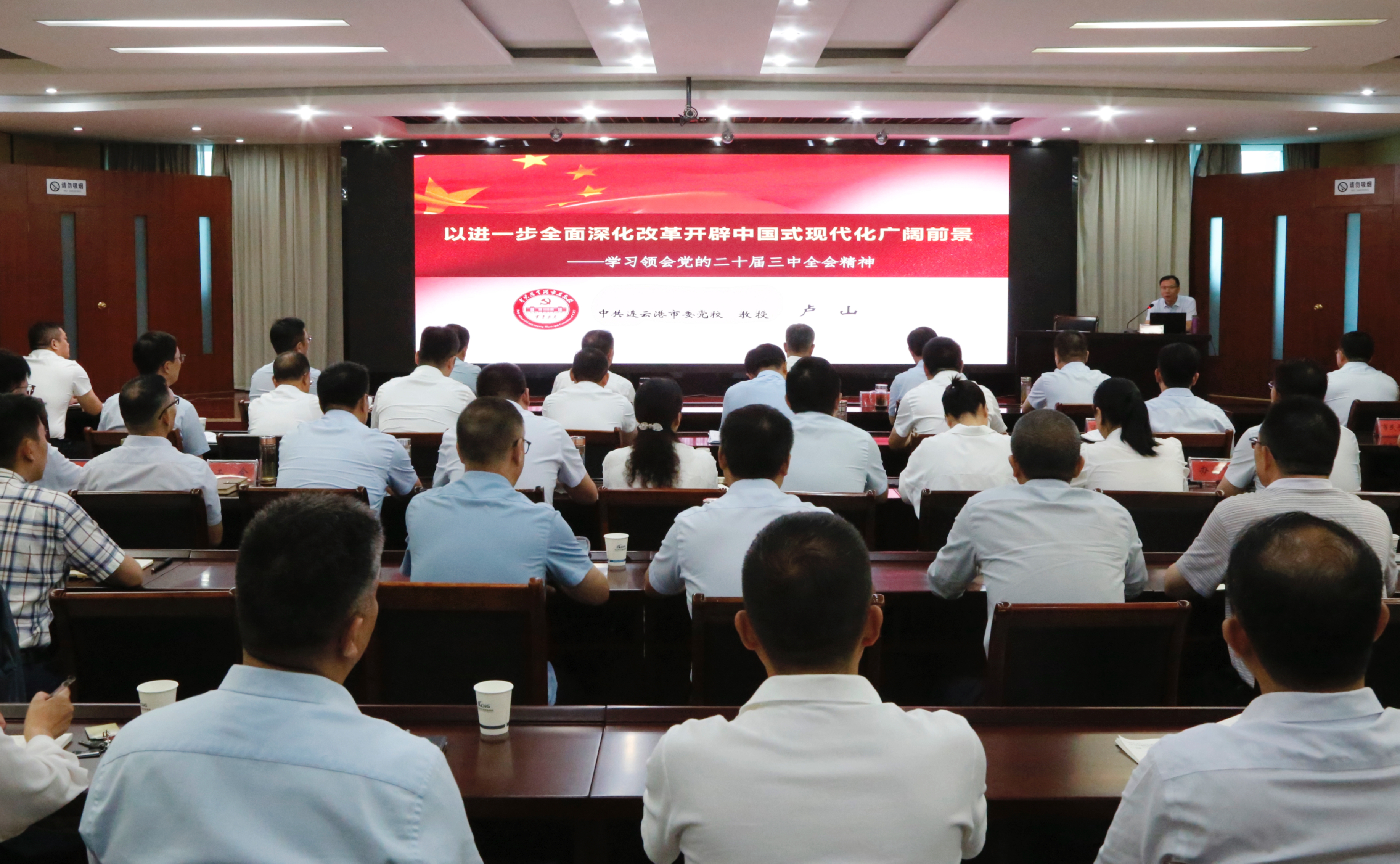 8月16日,集團舉辦學(xué)習貫徹黨的二十屆三中全會(huì )精神培訓會(huì ),邀請市委黨校教育長(cháng)、教授盧山作專(zhuān)題授課。集團黨委領(lǐng)導班子成員、集團各部門(mén)負責人、各權屬單位領(lǐng)導班子成員及黨群部門(mén)主要負責人、“兩代表一委員”共70人參加培訓。培訓由集團黨委書(shū)記、董事長(cháng)仲偉濤主持。