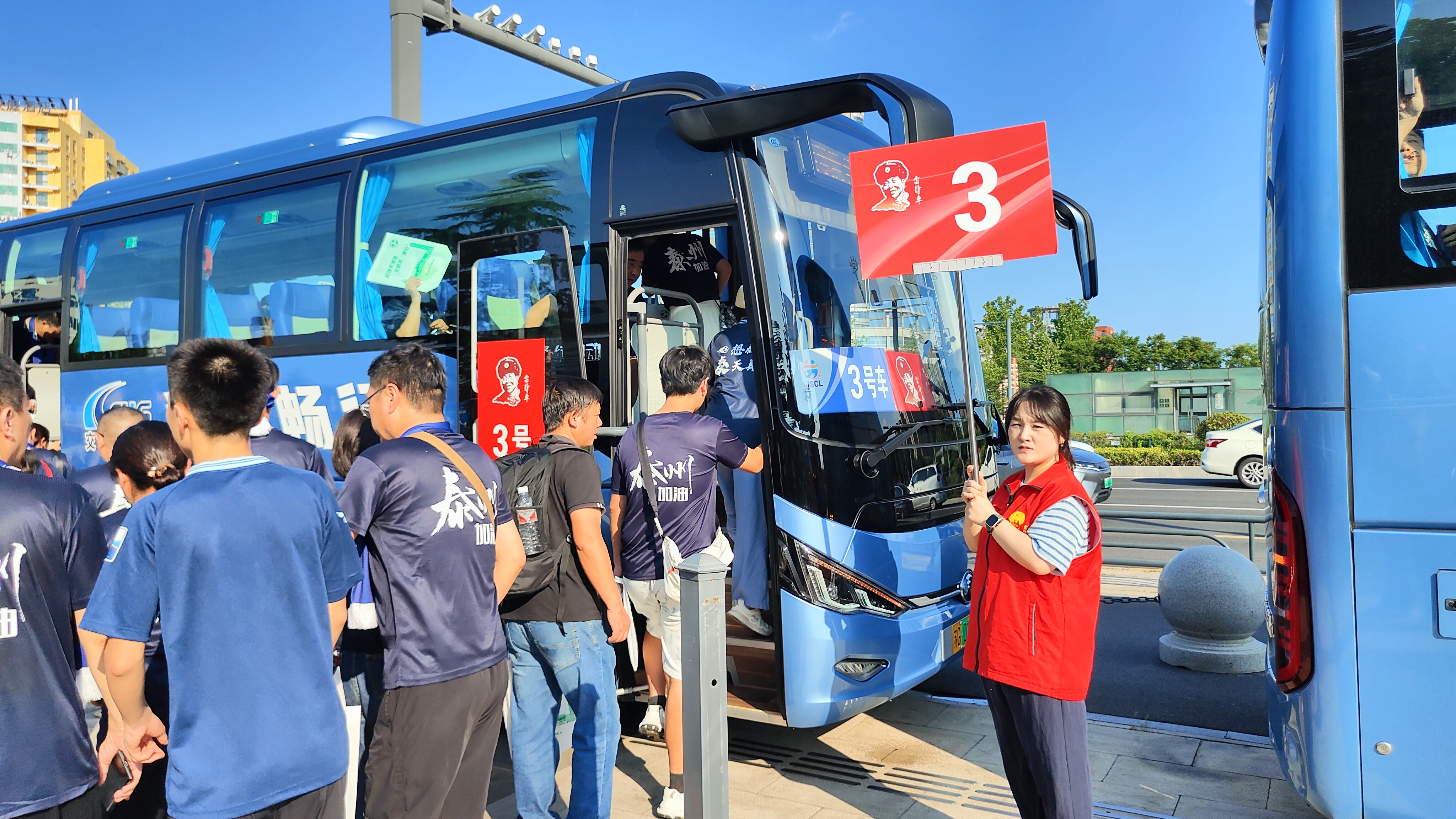 夜幕降臨,賽事落幕,賽場(chǎng)出口處的“雷鋒車(chē)”手引導員們排成兩列,舉著(zhù)指示牌在人群中組成通道,“往這邊走,直達高鐵站”的聲音此起彼伏。他們一邊引導方向,一邊貼心提醒球迷們注意安全,直到最后一名泰州球迷平安坐上返回高鐵站的接駁車(chē)。