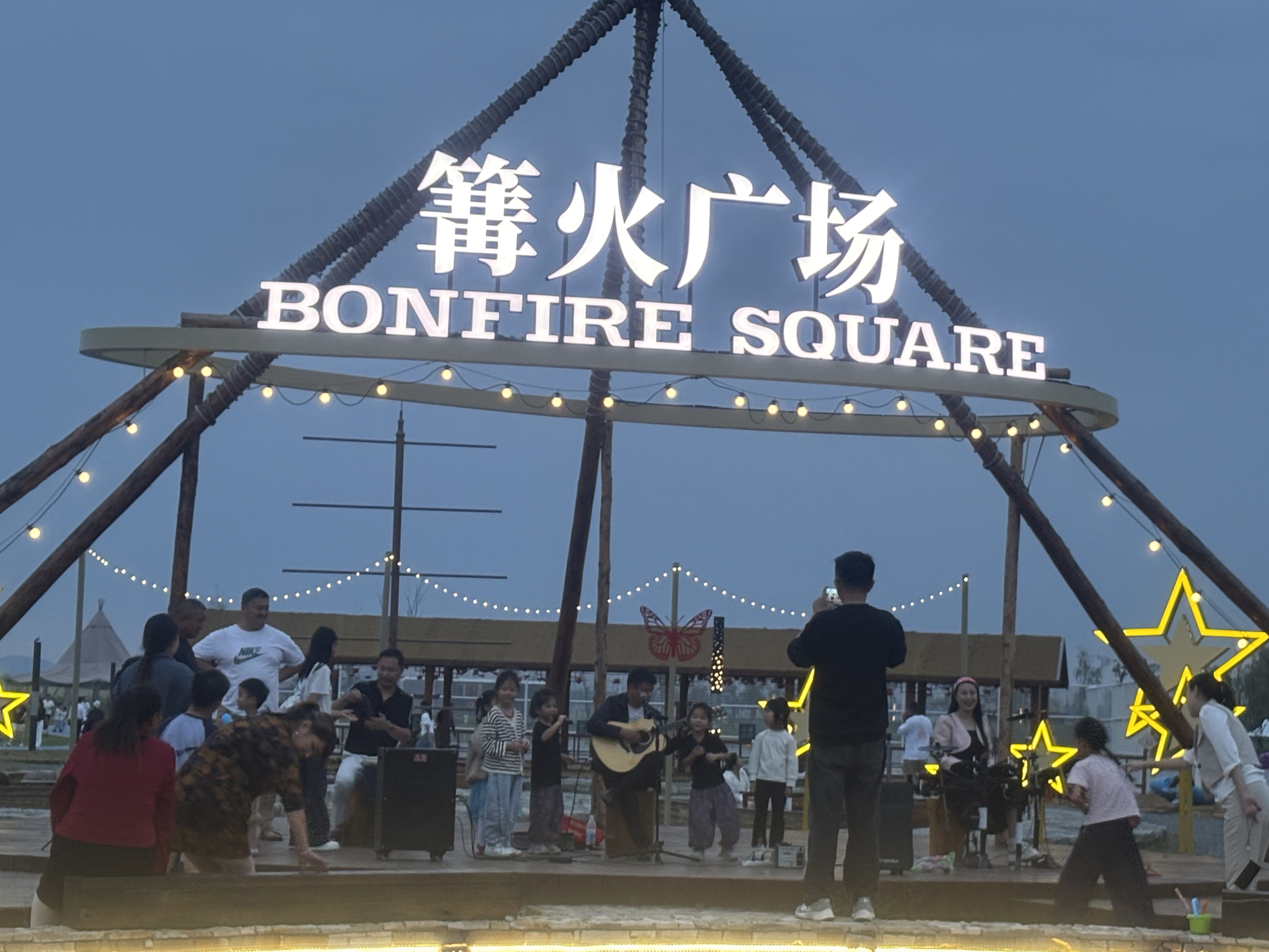 日間的營(yíng)地,游客可體驗越野車(chē)在秋風(fēng)中馳騁的快意,感受射箭、投壺等傳統項目的雅趣;親子桌游、乒乓球賽笑語(yǔ)盈庭,天空舞臺無(wú)人機表演更添科技魅力。當暮色浸染湖面,營(yíng)地內篝火躍金映笑臉,煙花綻彩綴星河,星空音樂(lè )會(huì )的旋律隨湖風(fēng)漫溯,將浪漫與溫暖定格。