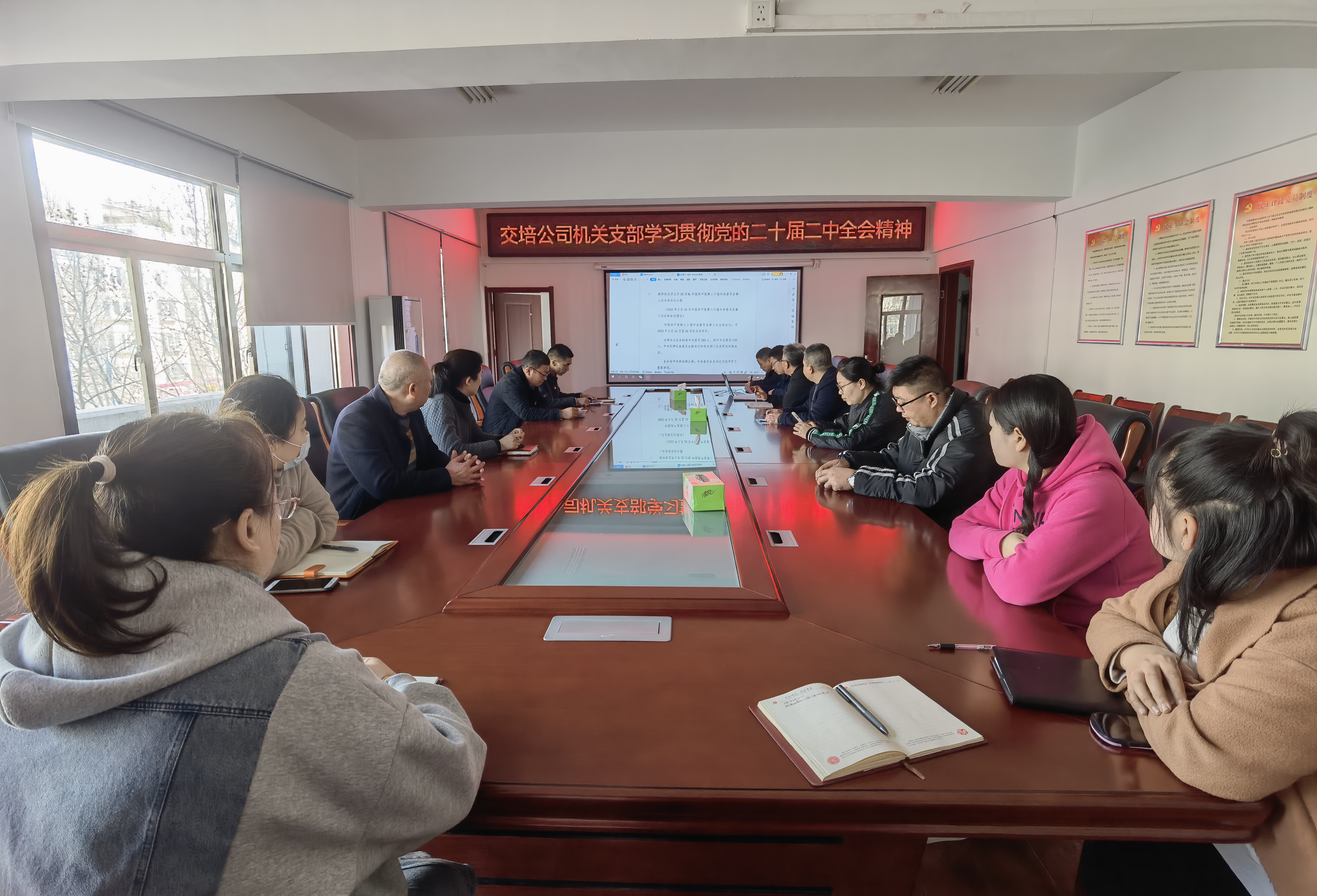 近日,交培公司機關(guān)黨支部組織全體黨員、積極分子學(xué)習黨的二十屆二中全會(huì )精神,會(huì )議由機關(guān)支部書(shū)記吳小江主持,并結合當前實(shí)際研究部署支部工作。