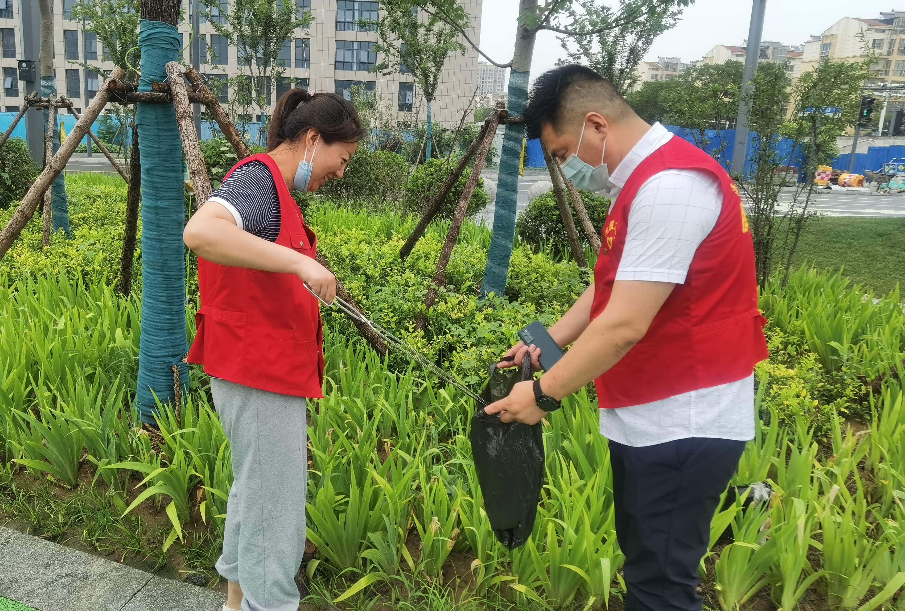 活動(dòng)中,事業(yè)部的黨員志愿者們身穿紅馬甲,一邊步行一邊撿起棧道兩側的廢紙、外賣(mài)盒、煙頭等雜物。志愿者們發(fā)揚不怕苦、不怕累的精神,不放過(guò)綠化帶中任何一處隱藏的垃圾。盡管天空中還飄著(zhù)小雨,但志愿者們仍舊熱情高漲,經(jīng)過(guò)一下午的勞動(dòng),他們用辛勤的汗水換來(lái)了道路兩邊干凈整潔的衛生環(huán)境,以實(shí)際行動(dòng)為文明城市增添一道靚麗的風(fēng)景線(xiàn)。