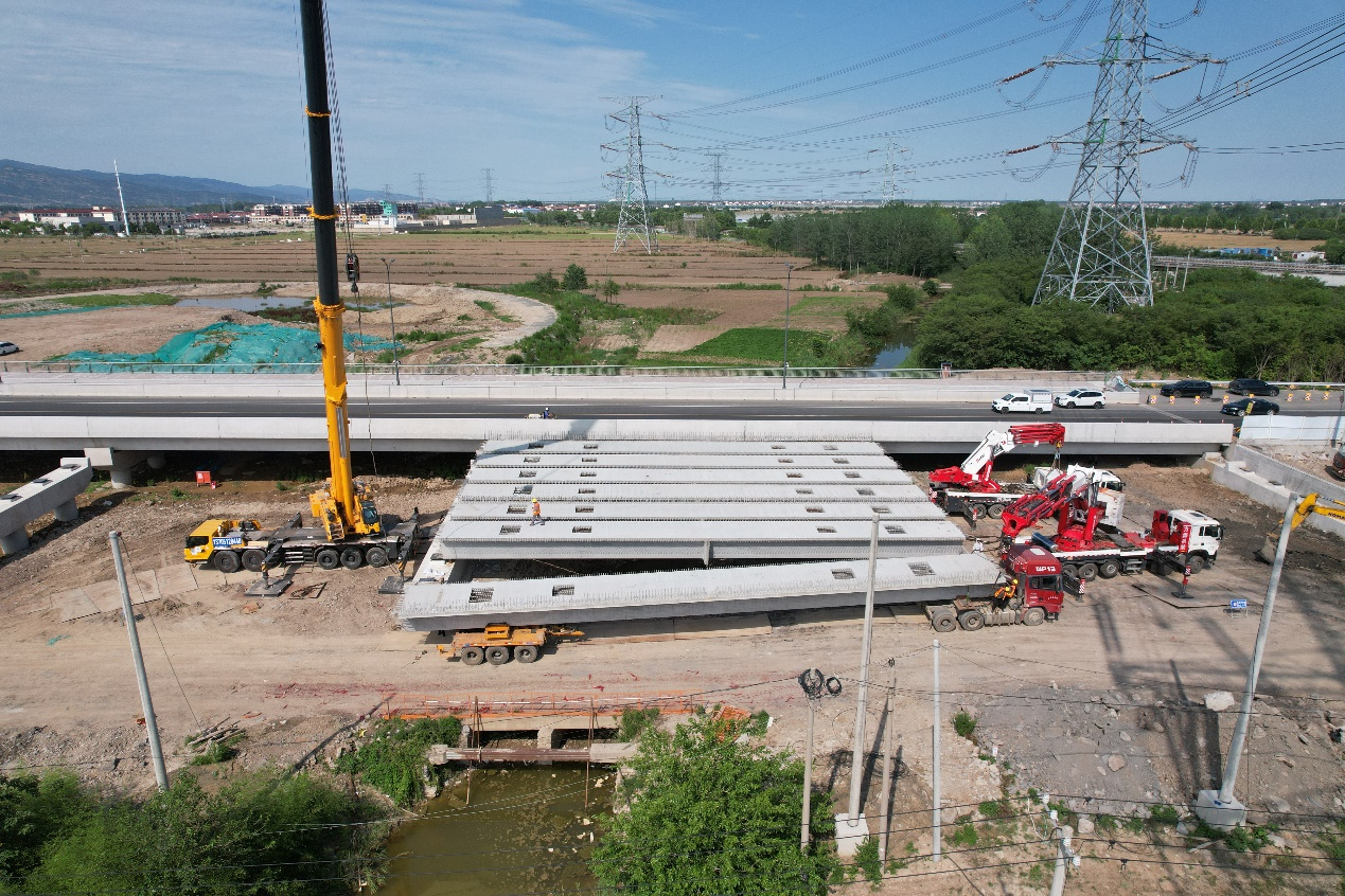瀛洲南路寧海樞紐上跨橋完成限高箱梁吊裝作業(yè)